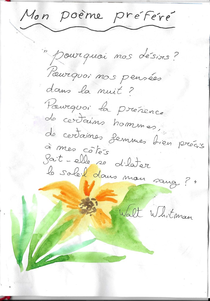 4. MON POEME OU MES PAROLES DE CHANSON PREFEREE : j’écris mon poème préféré ou je retranscris les paroles de ma chanson préférée ou éventuellement une partie finement choisie de cette chanson, un extrait en somme.