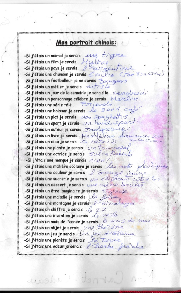 3. PORTRAIT CHINOIS : Ce jeu est souvent utilisé pour faire connaissance, parlez-nous de vous…