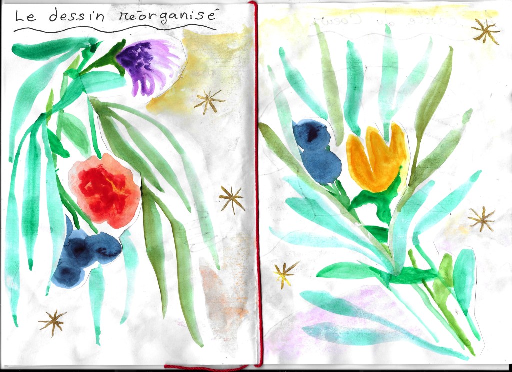 7. PEINTURE REORGANISEE : peignez ou dessinez quelque chose qui vous fait plaisir sur l’instant, sans réfléchir. Lorsque la peinture est sèche, découpez les parties de cette peinture pour les disposer dans un nouvel environnement, réinstallez autrement les parties et rajoutez de nouveaux éléments.